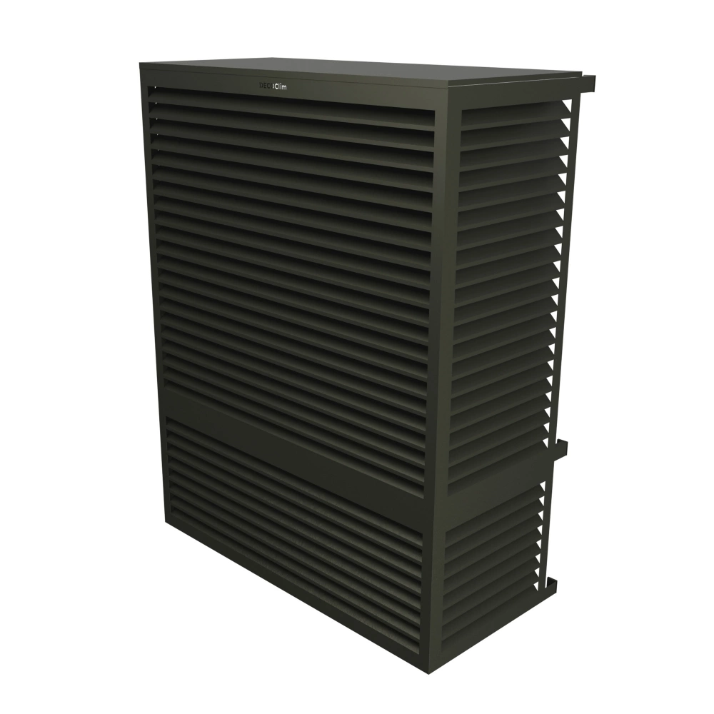 The Decoclim trunk acts as an insulating box that reduces noise pollution from 10 to 30% while allowing air to always circulate around the CAP thanks to the ultra -efficient design of its shutters. A large formwork to be installed or hanging, designed for easy maintenance The Decoclim heat pump cover is planned to adapt to all configurations and constraints thanks to its many accessories. It can be placed on the ground or suspended in height, on the facade of the house or the building, thanks to its hook system which allows it to be dropped simply to carry out the maintenance and the annual maintenance of the heat pump.