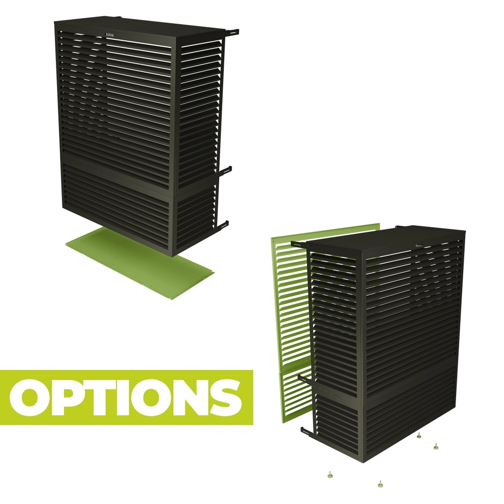 Gran altura, extralaje y muy profundo, las dimensiones XXL de este formulario de tapa le permiten ocultar las mayores bombas de calor. Nuestros cofres están incluso asociados y yuxtaposables para obtener el súper formulario con dimensiones hechas a medida que necesita. Aquí, por ejemplo, se asociaron un cofre XL y un accesorio XL para obtener este formato muy grande.